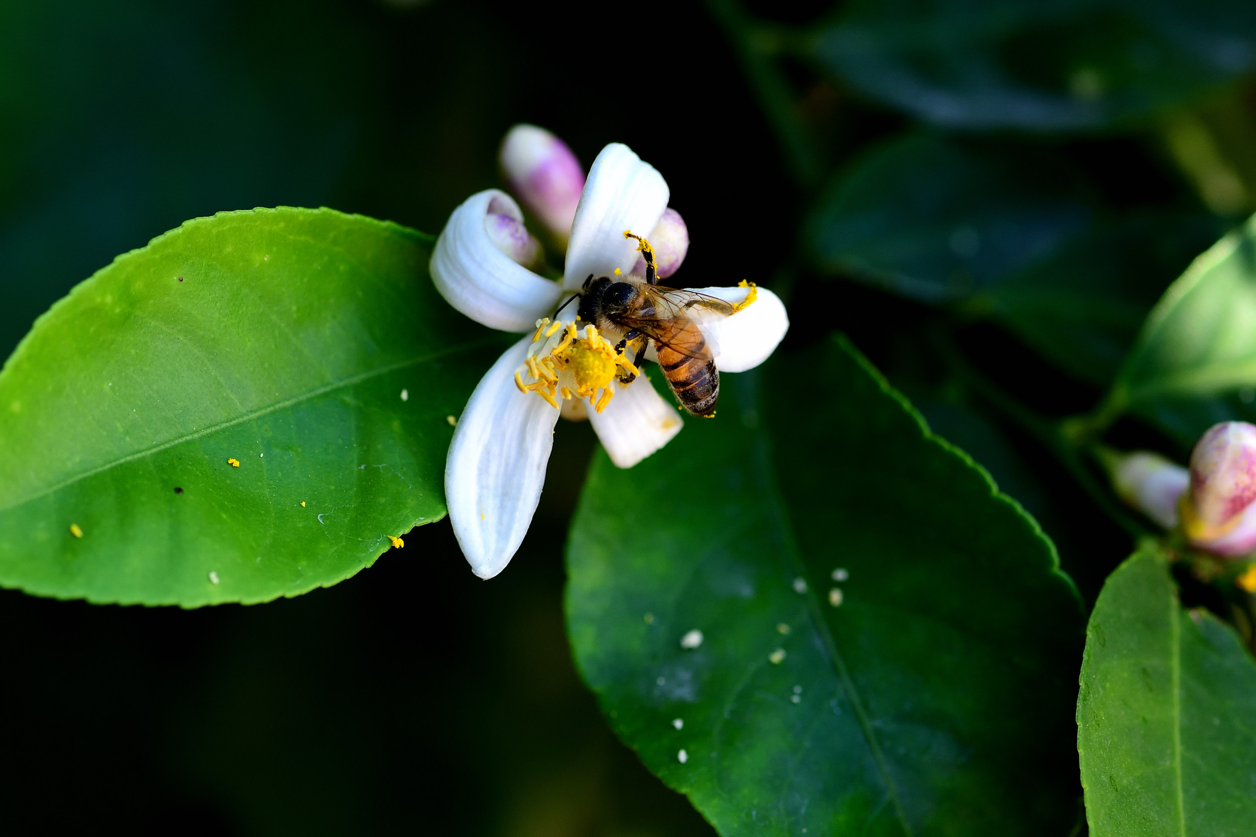 You’ll probably notice a lot of flowers with very busy bees! They’re pollinating like crazy – like the one in the photo above!