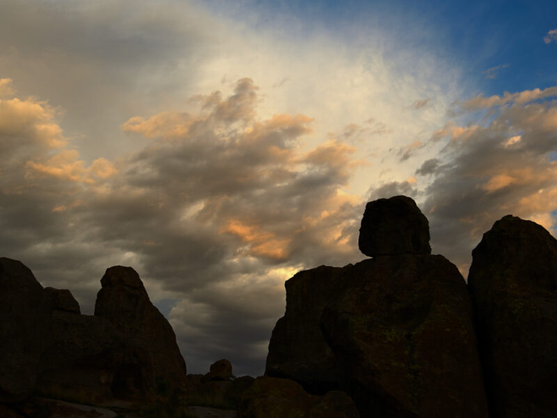 Onward to the Chihuahuan desert region of southwestern New Mexico. The City of Rocks State Park showcases volcanic rock pinnacles that present a sharp contrast to a storm that’s rapidly moving eastward.