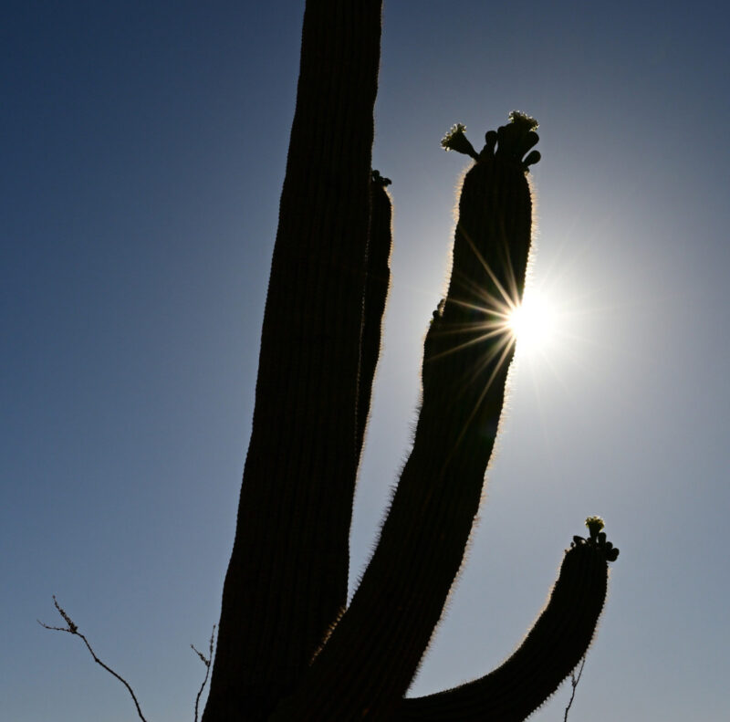Back home to Arizona, where an evening sun star peeks out from behind our state cactus, the saguaro.